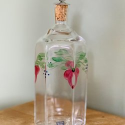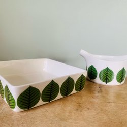 Tekanna med ett bambuhandtag. Kannan har ett mönster av blommor och kvinnor i traditionella kläder. Locket har ett matchande blommönster.