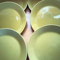 Porslin/ keramik med grön lasyr samt dekor .