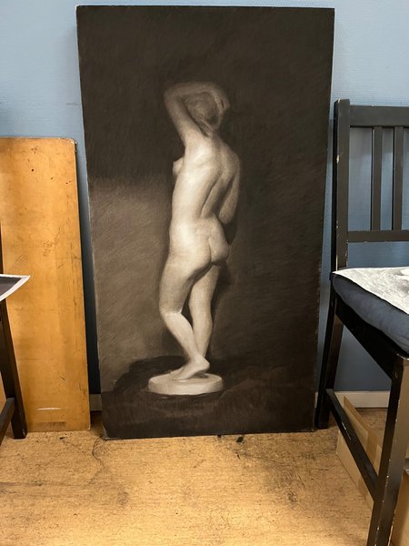 En figurstudie i kol och krita på tonad Canson .ca 110x65cm , ritad av mig.