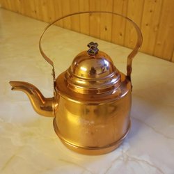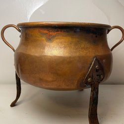 En vacker kopparkittel med handtag. Perfekt för dekoration eller användning.