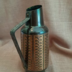 En dekorativ vintage kopparkanna med ett geometriskt mönster. Kannan har ett handtag.
