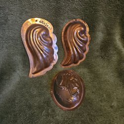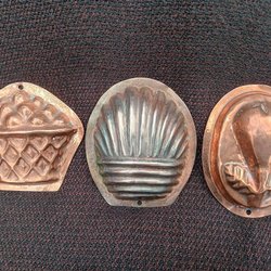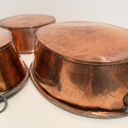 Set med kopparformar. Perfekt för matlagning eller att hänga på väggen, de har alla öglor.