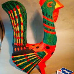 Två är dekorerade med hjortar, en med en tjäder och en med körsbär.
