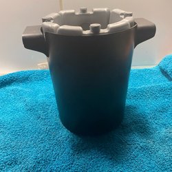 En kopparfärgad kakburkar med lock. Den har dekorativa band runt om.höjd 11,5 cm diameter 23 cm