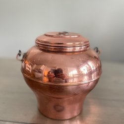 En kopparkittel för den som uppskattar klassisk design. På handtaget finns en stämpel Wassbergs Borås 2½ L