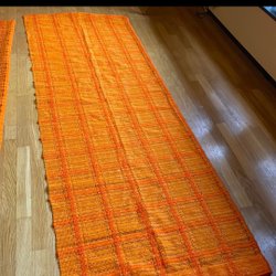 Otroligt vacker matta från 60/70talet. Kaffefläck undertill, i övrigt fräsch och utan lukt (tycker jag).