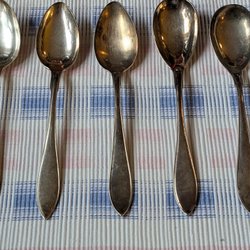 4st skedar i nysilver. Från olika serier, olika storlekar.
