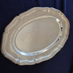 Flaskhållare och fat. Fatet märkt NS Alpacka och 25 cm i diameter. Flaskhållaren är märkt Carlström NS och 24 cm hög. Troligen sent 1800- tidigt 1900tal.