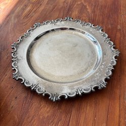 En rund bricka i nysilver