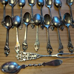 Nysilver skedar. Olika sorter.