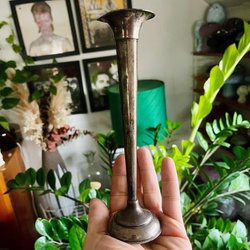 En liten söt ljusstake i silver med stämplar,se bild i fint skick.Vikt 32 g. Höjd ca 8.5cm ,diameter uppe 4.3 cm och nedtill 6.5cm.