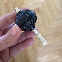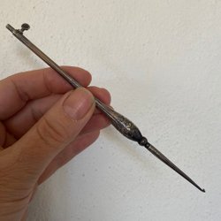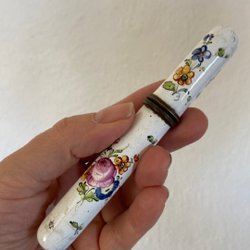 Två ihåliga söta glasben som antagligen varit parfymflaskor på 1920-talet. Men absolut bra förvaring för gamla nålar också.