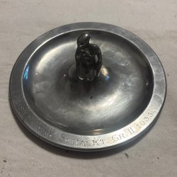 Askfat i tenn med pojke i hög hatt. Kommer från
