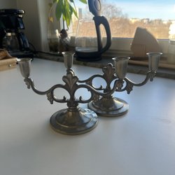 Säljer ett par ljusstakar i tenn.