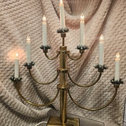 Ett dekorativt set bestående av en liten skål / ytterfoder kruka och en sked i mässing. Skålen har små fötter och handtag. Skeden har ett dekorativt ansikte på toppen. Ca 9 cm hög, sked 16 cm lång