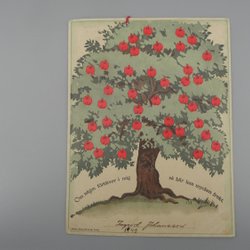 En plansch med ett motiv av två älgar och texten ”INSIGNE COMITAT Ölandie”