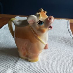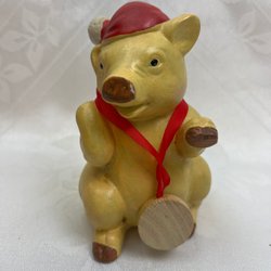 Grisen har ett färgsläpp under hakan,syns på bild 2. Grisen är 20cm lång och man kan ha den liggande eller hängande på väggen.