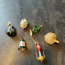 5 st. julkulor, blå, varav 1 st. lite ljusare blå, i plast, höjd 6,6 cm, skrapmärken finns, titta noga på bilderna innan bud
