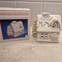 Halmprydnader, tränissar och 7st trästjärnor. Ett svenskt och ett norskt flaggset.