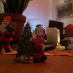 Ett set med juldekorationer. Inkluderar 2 änglar, 3 tomtar och en trumma.