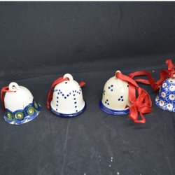 Fint skick.Tradition juldekorationer tillverkade i mässing. Setet innehåller flera olika former inklusive hjärtan, hästar, hus och löv, alla med röda band för upphängning. Dekorationerna är avsedda för användning under julperioden.