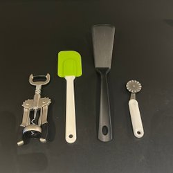 Rött julgranspynt från IKEA i olika former. Saknas en stjärna som gått sönder, och en rosett, annars komplett.