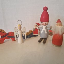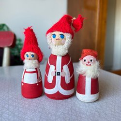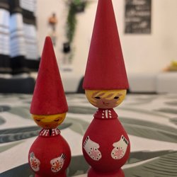 Sött par med retro tomtar i trä.