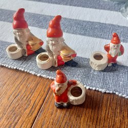 Tre söta jultomte ljusstakar i keramik.