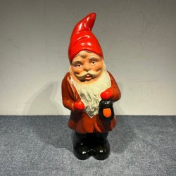 En charmig tomte från 1972. Tomten bär en lykta och har en klassisk design med röd luva och blå jacka. Perfekt som dekoration eller som en samlarobjekt.