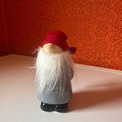 En charmig tomte med ett långt grå skägg och en svart hatt. Perfekt för att sprida julstämning i ditt hem.