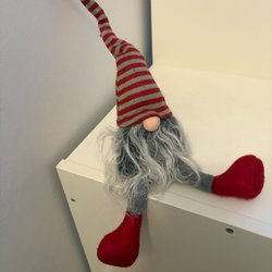 En söt jul tomte med röd luva och grått skägg. Tomten är ca 47 cm lång o Tomten väger 464 gram.