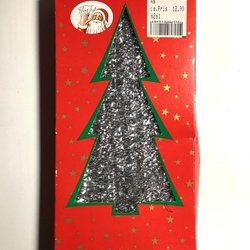 Tomte med en röd stickad mössa och grå stickad kropp ( trästomme) med en liten lykta i trä i ena handen och en skylt med texten "God Jul" i den andra
