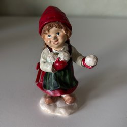 En bedårande liten tomteflicka med grå stickad mössa och rosa fluffig halsduk. Perfekt som juldekoration eller en söt present.