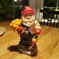 En fin tomte från Hedlund bärande på en lykta