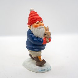 En charmig tomtefigur från Titti Gnosspelius, utgiven av WWF år 2000. Tomten håller en liten hare i famnen och står på en snötäckt bas. Perfekt för samlare eller som en söt juldekoration.