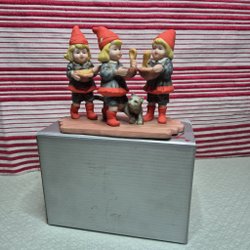 Tomtefigur från Jenny Nyström, Tomten på geten. Figurerna är gjorda i porslin och är ca 10 cm höga.