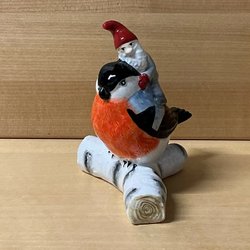 12.5 cm hög, plattan tomten står på 8.5 * 4 cm. I mycket fint skick!