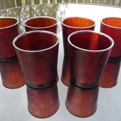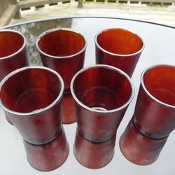 Ett par charmiga äldre ljusstakar i form av tomtar med röda mössor. Varje tomte sitter och håller i ett litet krus. Märkta med 'Import' undertill. 6 cm höga
