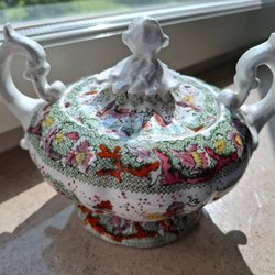 Keramiktomte med lykta.