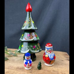 En charmig retro docka i form av en tomte. Tomten har en röd luva, grön jacka och röda byxor. Han har även ett vitt skägg och en käpp i handen. Perfekt för samlare eller som en dekorativ detalj.