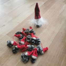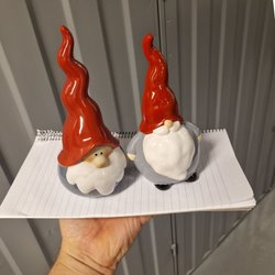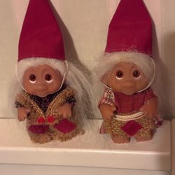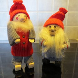 Två stycken fina tomtar. Tomtarna är ca 28 cm höga och säljes i befintligt skick.
