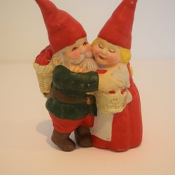 Tomtepar i någon form av ihålig lätt keramik/gips. Vid fötterna ska deg se ut som iskristaller och de skräpar lite lätt. 30cm höga och 20cm bredd i botten. Väger ca 1,3 kg