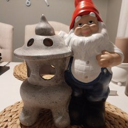 En charmig retro tomtefigur med en gryta. Perfekt som en dekorativ detalj under julen eller som en del av en samling av tomtar och juldekorationer. Denna figur har en klassisk design och ger en nostalgisk känsla.