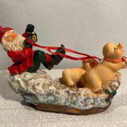 En charmig Hedlund-figur föreställande två tomtar som sitter bakom en tallrik med gröt och skedar. Perfekt som juldekoration eller samlarobjekt. Höjden är cirka 12 cm och bredden är cirka 10 cm. Märkt med Hedlund på undersidan.