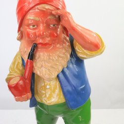 Äldre keramiktomte från en större samling. En trädgårdsfigur föreställande en smed. Figuren är tillverkad i Tyskland och märkt med "Germany" på undersidan.