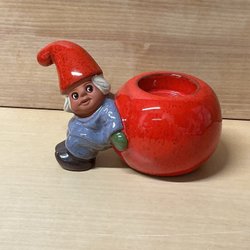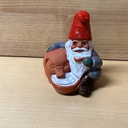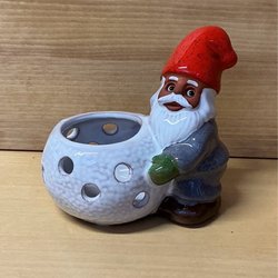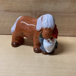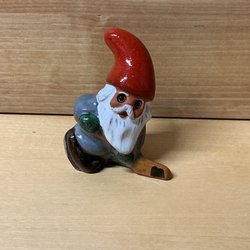 ROLF BERG TORSHÄLLA - tomte dragandes på kälke med paket på - figurin