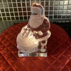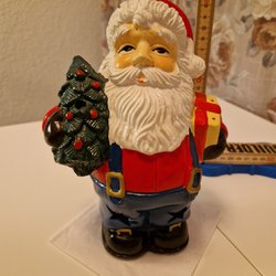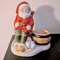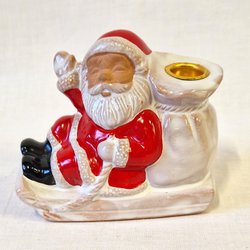 Söt jultomte med säck som kan användas som ljusstake. Höjden är cirka 19 cm.