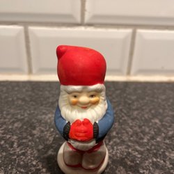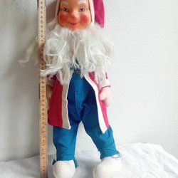 En charmig retro jul tomte docka. Perfekt för juldekoration eller samlare. Denna docka har en röd luva, röd jacka och blå byxor. Den har ett vitt skägg mycket gammal i retro skick orkar inte stå av sig själva .