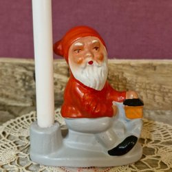 Tysktillverkad vintage tomte i terrakotta. Fin men har vad som ser ut som inlackade penselborst på några ställen. På höger skinka finns en stämpel "Terrakotta Gräfenroda DDR". Ca 33 cm hög