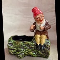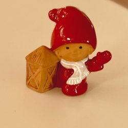 Charmig tomtefigur i glaserad keramik från JIE Keramik, designad av Eva Järenskog. Klassisk röd tomte i liggande pose, fint modellerad med målade detaljer. Märkt undertill JIE – Design Eva Järenskog.